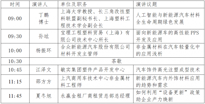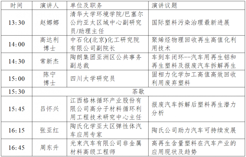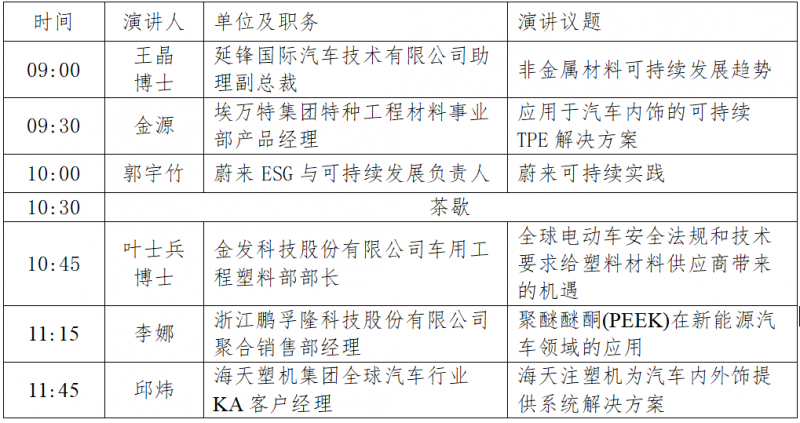 平行論壇一:電動汽車中的塑料:挑戰和機遇