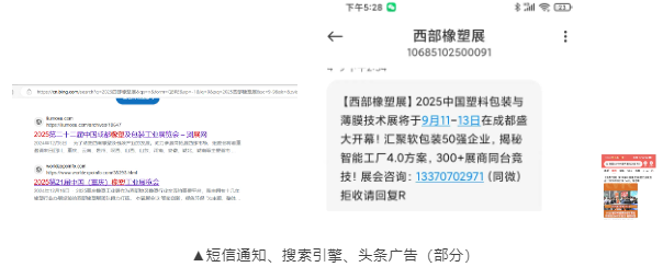 組委會聚焦“西部橡塑特邀VIP買家團”,精準拓展西部五省高端買家蒞臨采購。構建10萬+買家數據庫,通過專業呼叫、地推團隊、短信、電子郵件及快遞直郵等方式,實現一對一精準邀請,吸引橡塑行業優質專業觀眾參與。