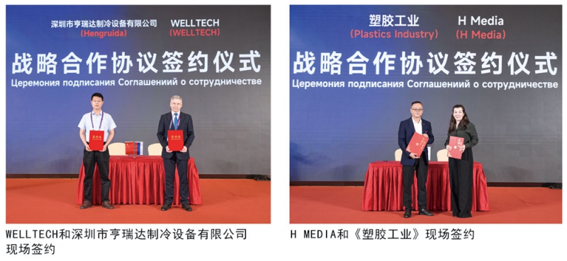 隨著熱烈的掌聲響起,一場激動人心的簽約儀式正式開啟。WELLTECH攜手深圳市亨瑞達制冷設(shè)備有限公司;H Media與《塑膠工業(yè)》雜志;俄羅斯化工協(xié)會與《塑膠工業(yè)》雜志現(xiàn)場共同簽署合作協(xié)議。這不僅標志著雙方資源互補、互利共贏合作的嶄新起點,更是雙方深化合作、共謀未來發(fā)展的重要里程碑。