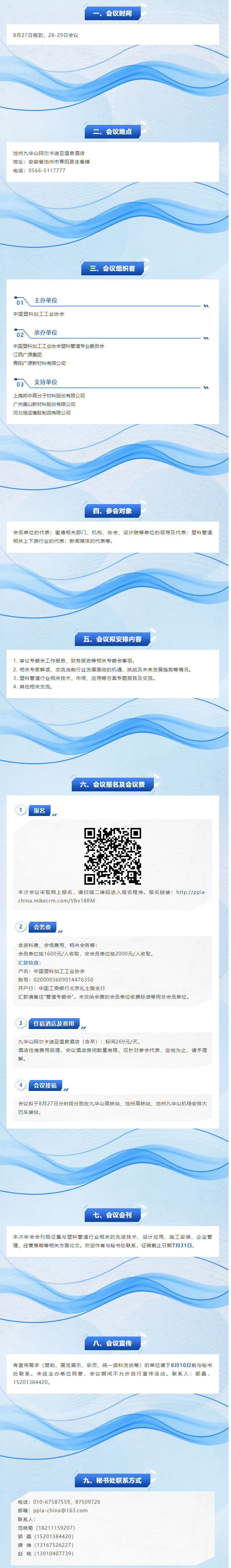 中國塑料加工工業(yè)協(xié)會塑料管道專業(yè)委員會定于2025年8月27-29日在安徽省青陽縣召開“2025年年會暨2025年塑料管道行業(yè)交流會”。