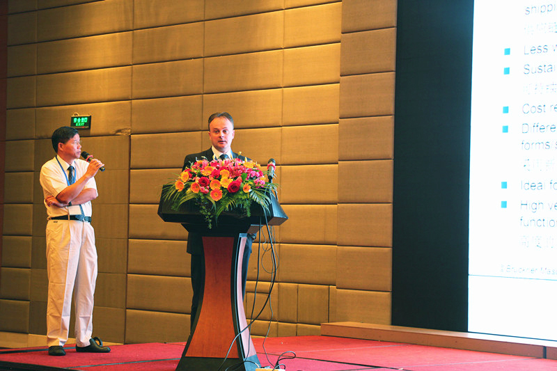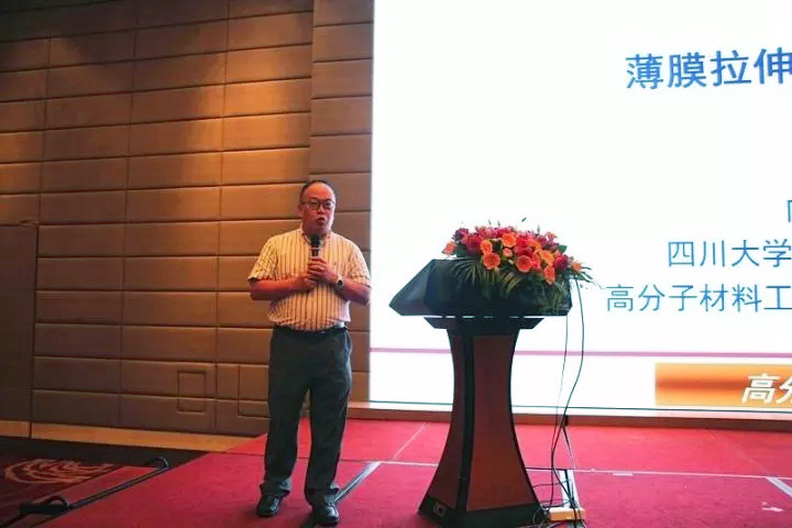 9點半,安徽金田高新材料股份有限公司人力資源部部長徐董向大會做了《打造行業特色 創新品牌發展》的技術報告。他提出了從生產基地、設備運行速度和研發力度三個方面擴大產能規模的建議,介紹了“金田工匠”品牌的具體內容,鼓勵大家精心打造企業投資特色,創新“實力上市”品牌。四川大學高分子研究所向明教授在薄膜拉伸技術應用領域發表了自己的研究成果。他解釋了拉伸過程中聚合物結構的變化,分析了用于拉伸包裝薄膜的半晶高分子材料的類別,講解了非晶聚合物薄膜拉伸技術實驗過程和實際應用的優越性。德國布魯克納機械有限公司銷售經理瓦希其做了《雙向拉伸薄膜和拉伸設備的最新發展》的報告。他按原料類別分析了拉伸薄膜分解在市場上的分布比例,羅列了中國與世界其他地區BOPP的銷售與產能情況,詳細介紹了雙向拉伸業務在包裝行業的發展趨勢。