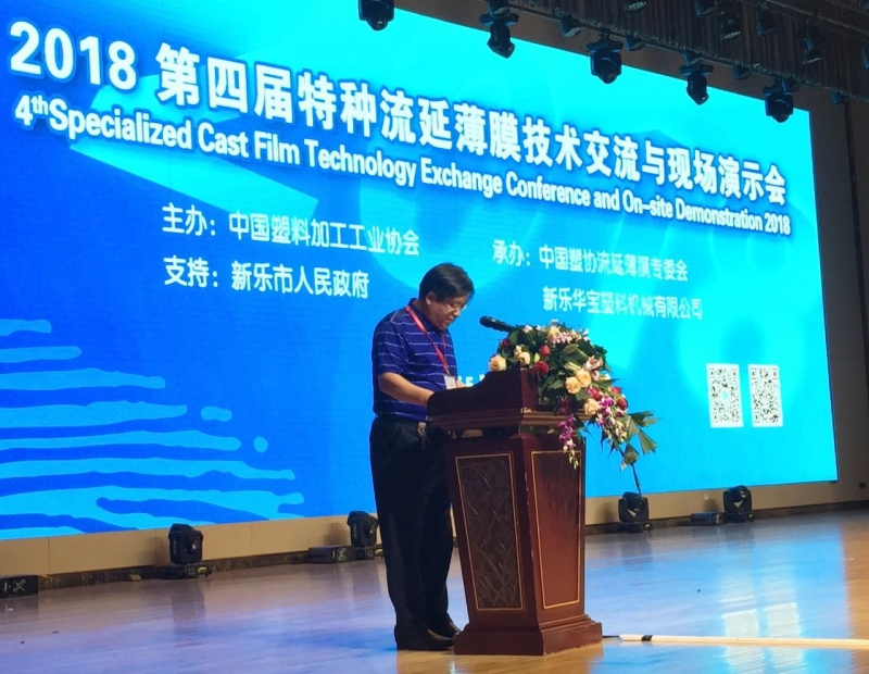 面對客戶的青睞與支持,新樂華寶塑料機械有限公司機械總工程師張軍星重點分析了高端流延塑料機械行業新產品的發展動態、發展方向及前景,并介紹了華寶與業內專家、科研院校、專業公司在特殊材料采用流延法加工方面進行開發設計和設備制造的成果。