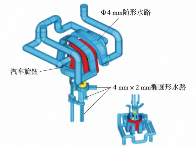 針對汽車多功能旋鈕傳統水路冷卻方案存在的問題,結合產品結構特點,設計了基于3D 打印的隨形水路冷卻系統,顯著提高了模具的冷卻效率和溫度分布均勻性,尺寸精度達到了 MT3,模具型腔達到十六腔,綜合產能...