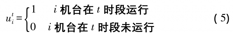由式(2)中,對(duì)PZ進(jìn)行替換,可得出新的數(shù)學(xué)模型,見(jiàn)式(4),前式(3)中,運(yùn)行機(jī)臺(tái)數(shù)量必屬于分組內(nèi)的機(jī)臺(tái),使用μi作為機(jī)臺(tái)運(yùn)行狀態(tài),見(jiàn)式(5)