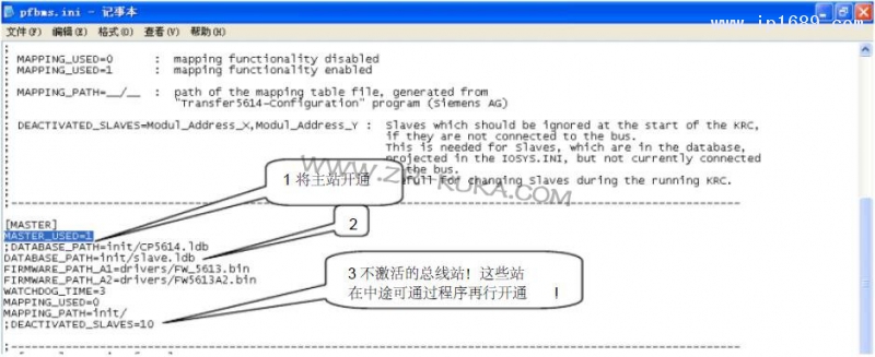 二、將C\KRC\Roboter\Init 文件夾內的pfbms.ini 文件打開,并設置相應參數。