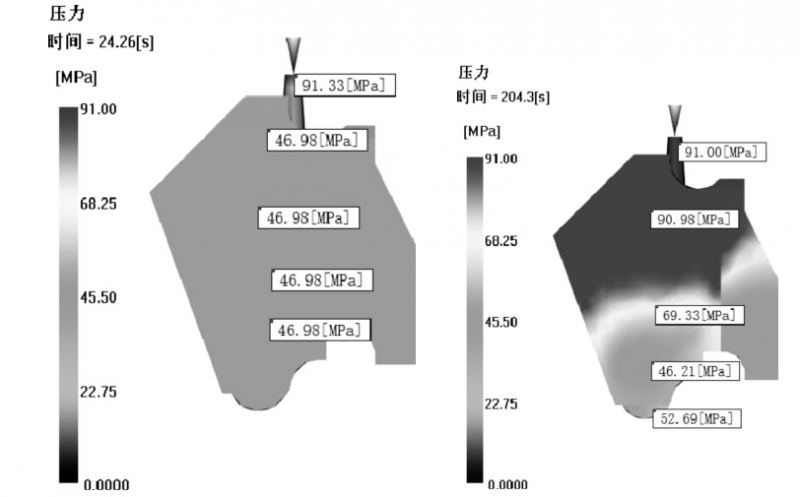 保壓控制保壓壓力91 MPa,
