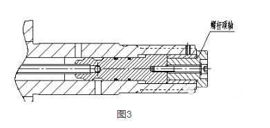 4) 將螺桿頂軸裝入螺桿(不加墊片)。如圖3所示。
