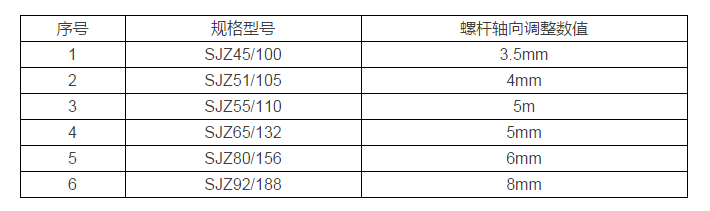 不同規格錐雙主機螺桿軸向竄動1mm螺桿機筒徑向變化尺寸:
