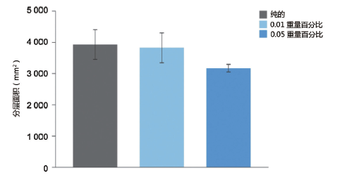 超聲C掃描結果表明,純樣品的平均分層面積為3940±470 mm2,而用0.05(重量百分比)的納米管改性的樣品平均分層面積為3180±130 mm2。與純樹脂相比,分層面積顯著減少了19.3%(見圖2)。