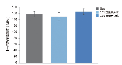 此外,沖擊試驗后緊接著的壓縮與飛機的應用非常相關。后續壓縮表明用0.05重量百分比的納米管改性的材料具有使沖擊強度后的壓縮程度增加約5%的潛力(見圖3)。未來在優化這些材料方面的發展預計會有更大的改進。