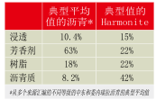 相較于普通的瀝青,Harmonite有機含量范圍為25~35%(取決于產品要求),是一個高軟化點(290℃),包含大約5倍瀝青質結構和2~1/2倍多的樹脂和瀝青質的組合體(表1)。它由高分子量的,芳烴碳環單元的復雜混合物組成,還含有氧、氮和硫雜原子。業已發現瀝青和樹脂的高極性結構表現出聚合行為,物理交聯和加成型化學反應(氫鍵,范德華力)。其有機相可溶于芳烴和較長的直鏈烴類,但它不溶于水和酒精。