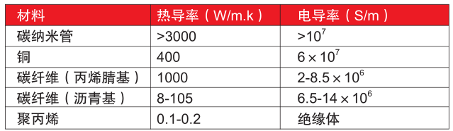 表3 碳納米管的導電和導熱性能