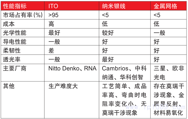 表4 三種透明導電薄膜性能比較