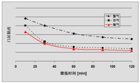 圖1:天然橡膠(NR)在氮?dú)狻⒖諝夂脱鯕猸h(huán)境下的塑煉