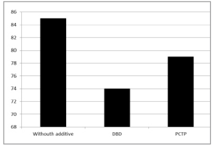 在機(jī)械塑煉的比較中,使用這兩種塑解劑都可以加速塑煉過程中天然橡膠的軟化,因此可以節(jié)省大量的能量和時(shí)間(圖3)。較高溫度下(>100℃),PCTP塑解劑的效果不錯(cuò)。而DBD塑解劑在高溫下的效果則更佳。