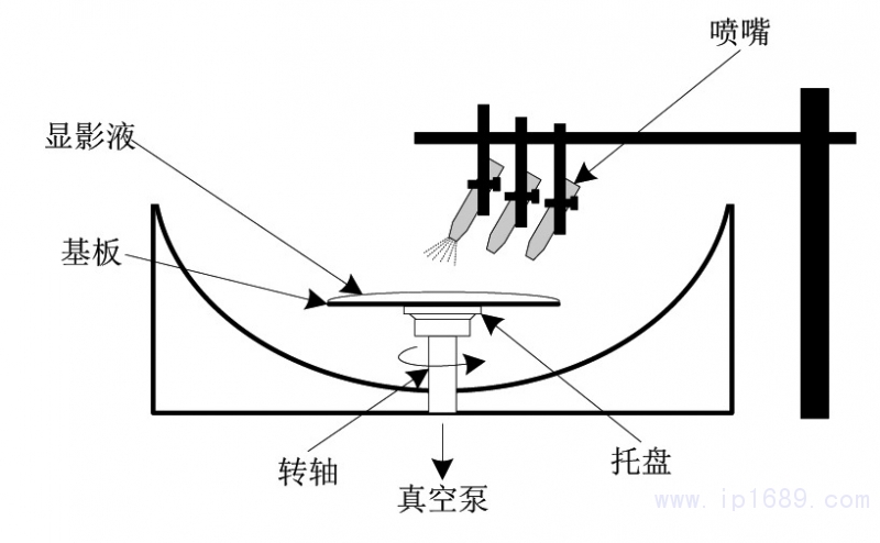 1.間歇旋轉(zhuǎn)噴淋顯影方法