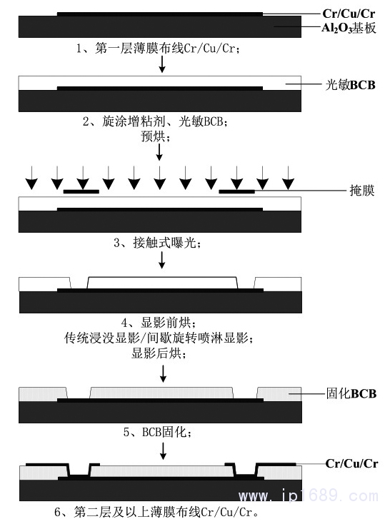 圖 2 光敏 BCB 通孔互連樣品制備流程圖