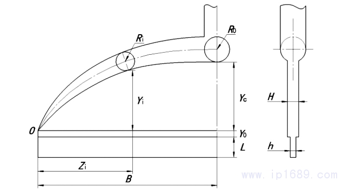 式中,Zi是任一點(diǎn)i在以扇形曲線左端為原點(diǎn)O的水平軸線上的距離值(見圖1),人為設(shè)定。
