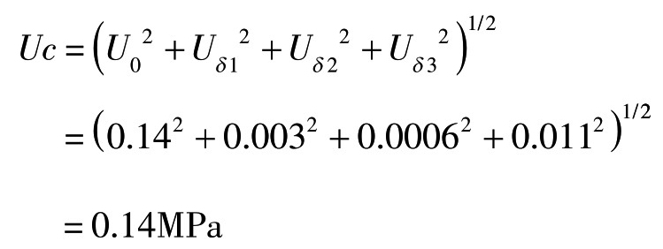 U=kUc,取包含因子k=2,故U=2×0.14=0.28MPa