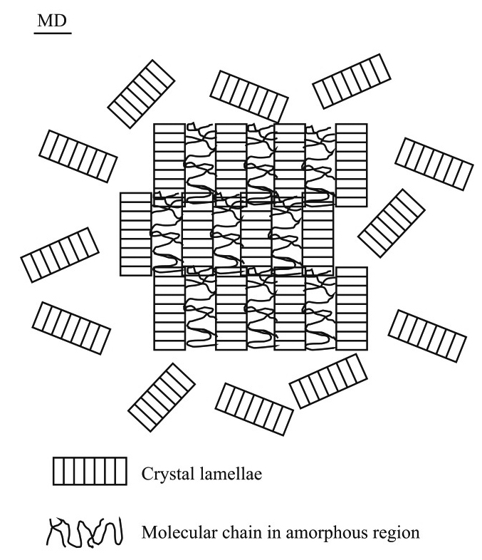 圖4HDPE吹膜試樣的片晶空間排列模型