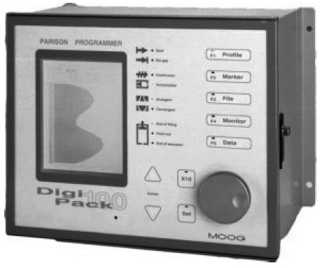 塑料型坯壁厚控制系統(tǒng)基本由以下部分組成:壁厚控制器,油源(伺服液壓站)及過濾器系統(tǒng),伺服閥及閥座,壁厚液壓缸,位置傳感器(電子尺)。其中關鍵部分為壁厚控制器和伺服閥,是整個壁厚控制系統(tǒng)的核心部件,目前中空成型機行業(yè)應用比較多的壁厚控制器是:MOOG,B&R,BECKHOFF,Barber-Colman,上海中船重工704所,等等。目前市場常見的主要是MOOG型坯控制器,這里以MOOG控制器為代表做主要介紹。