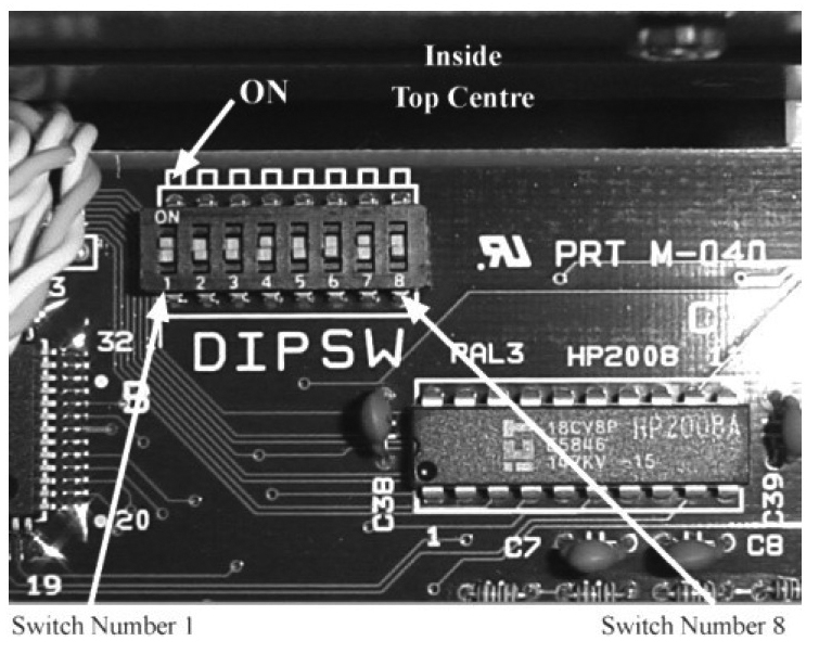 ①控制方式的設置,控制方式是指中空成型機的類型,分為連續(xù)擠出式和儲料缸式兩種方式,機型不同,壁厚控制系統(tǒng)的控制方式也不一樣。在基礎設置時,必須根據中空成型機的類型選擇對應的控制方式,具體由MOOG控制器內部的6#微動開關來選擇,ON為連續(xù)擠出式,OFF為儲料缸式。撥動微動開關時,壁厚控制器必須斷電。選擇完成后,MOOG壁厚控制器面板上對應的狀態(tài)指示燈將會點亮,“Continuous”代表連續(xù)擠出式,“Accumulator”代表儲料缸式。