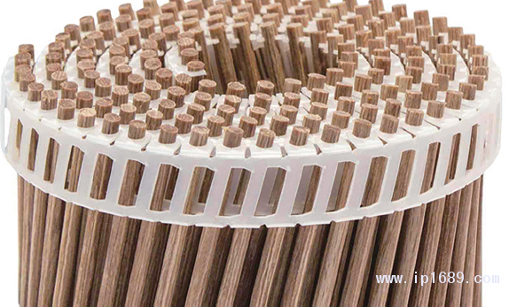 用于氣動釘槍的LignoLoc木質排釘,由高密度山毛櫸木材壓制,并采用酚醛樹脂壓縮而成。