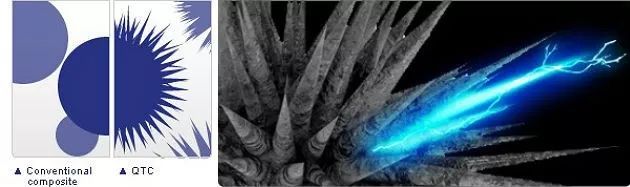 復(fù)合結(jié)構(gòu):常規(guī)(左)、QTC(中)和掃描電鏡(右)