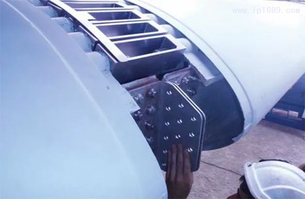 金屬配件被粘在每個(gè)葉片段的斯帕爾層壓板上,然后螺栓連接到這兩個(gè)部分。