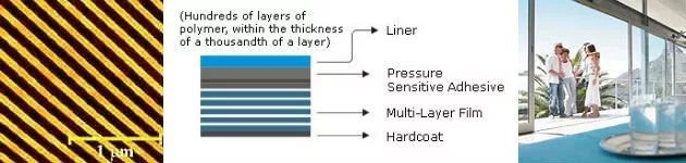 非金屬納米多層防曬窗膜可以由大約240納升層組成,比便利貼更薄。與傳統的窗膜相比,它們還可以讓更多可見光進入。這些薄膜是透明的,不會阻擋視線,沒有顏色也不會反光,但是可以阻擋紫外線(UV)損傷和熱量。