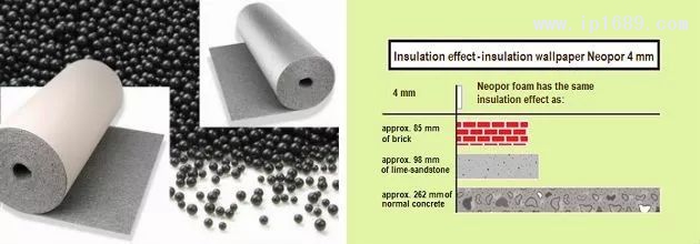 絕緣壁紙的厚度為4毫米,并且符合032等級的熱導率的要求,并且符合歐洲火類E產物耐熱溫度為75攝氏度的要求。