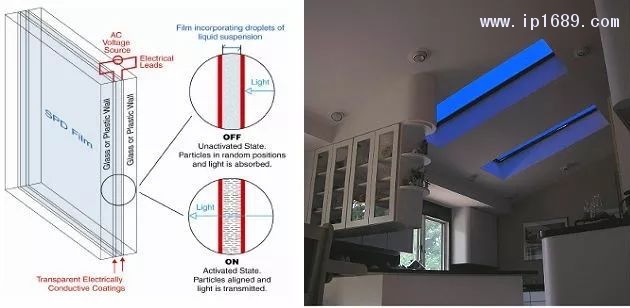 SPD層壓結構(左)和建筑天窗的智能改造(右)