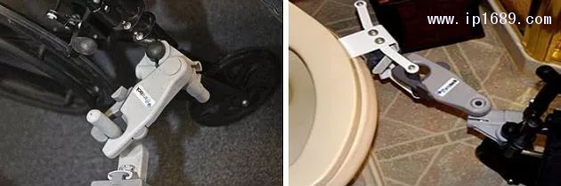 輪椅鎖定和停靠設計(左)帶有一個樞軸臂夾(右)