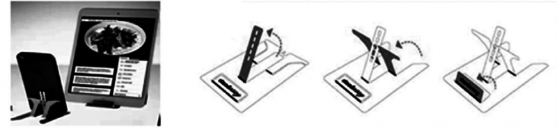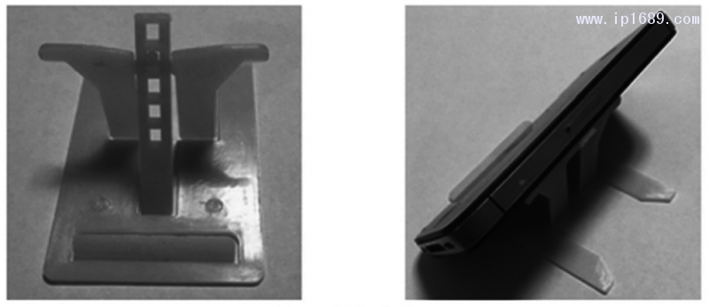 智能手機的高速發展,帶來了手機周邊產品設計開發的繁榮。手機支架類產品,出現于數年前,然而短短的幾年,已經成為了相當一部分用戶出行過程中必不可少的一類產品,為使用者帶來了很多便利。為了出行攜帶方便,手機支架的樣式越來越多,體積也越來越小。我們設計的這款手機支架和銀行卡尺寸基本相同,可以放在錢包或者卡包里,隨處可用,如圖1所示。它作為日常用品,要具備安全無毒,化學穩定性高,不易分解等特點和價格低廉的要求;同時,作為承重物件在一定的高度掉下或過載時,不會出現裂紋甚至斷裂,這就意味著塑件所使用的材料要有一定的機械強度。綜合以上考慮,我們選用了無臭無毒的PP材料。