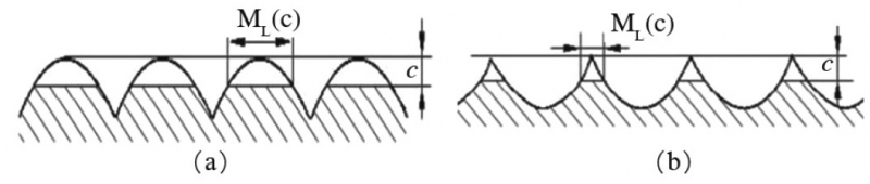 根據(jù)零件使用工況,對該活塞桿鍍鉻處理后對它 的耐磨性要求較高。對零件拋光后表面微觀形狀進行 分析,當(dāng)對給定水平位置 c 輪廓實體材料長度 Ml(c) 如圖 2(a) 所示時,鍍鉻后的耐磨性較好。
