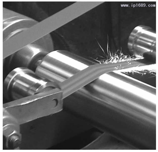 割下一段成品式樣,根據(jù) GB5270—2005,用挫 刀法測試鍍層結(jié)合力。將它固定在臺虎鉗上,用粗的 研磨挫沿從基體金屬到覆蓋層的方向,與鍍層表面約 45° 夾角進行銼削,鍍層應(yīng)無起皮脫落。