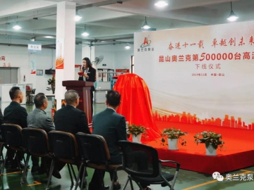 2019年11月18日,以“奮進(jìn)十一載 · 卓越創(chuàng)未來(lái)”為主題的奧蘭克泵業(yè)第50萬(wàn)臺(tái)高溫泵下線儀式,在奧蘭克生產(chǎn)車間隆重舉行