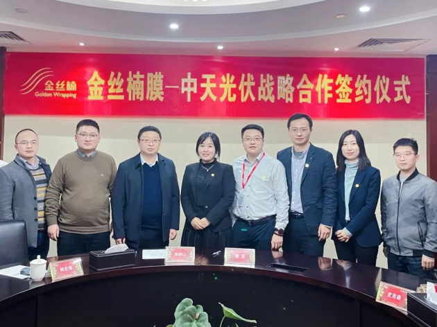 2022年1月7日,東方雨虹全資子公司金絲楠膜(上海)科技有限公司(以下簡稱“金絲楠膜”)與中天光伏材料有限公司(以下簡稱“中天光伏”)在上海簽署戰略合作協議。