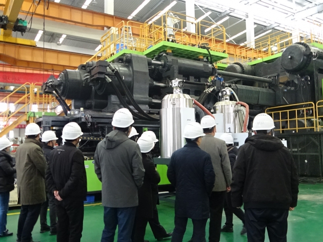 8500噸超大型注塑機由伊之密二板機產(chǎn)品線團(tuán)隊承制,這臺超大型高精密注塑成型機的額定鎖模力為8500T,最大鎖模力可達(dá)9000T。