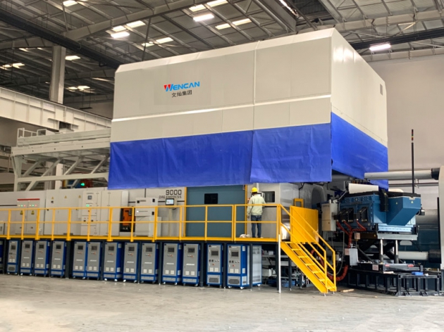 文燦股份天津生產基地:力勁9000T超級智能壓鑄單元一體化壓鑄汽車后底板順利試產