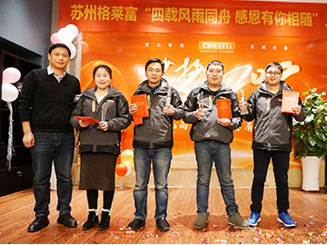 1月19日,蘇州格萊富機械科技有限公司迎來以“四載風雨同舟 感恩有你相隨”的2019新春年會。近五十位成員齊聚一堂,歡慶格萊富2018年取得的豐碩成果。