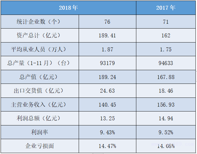從業人員數量大,企業虧損面增大。產量占全國比重有所提升,產值、主營業務收入、利潤總額數據均有較大下降,利潤率略有提升,高于全國平均。