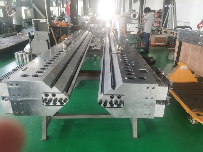 帶有上、下模層厚度可調節,配套復合分配器,可成產PC、PP、PE中空格子版模頭。