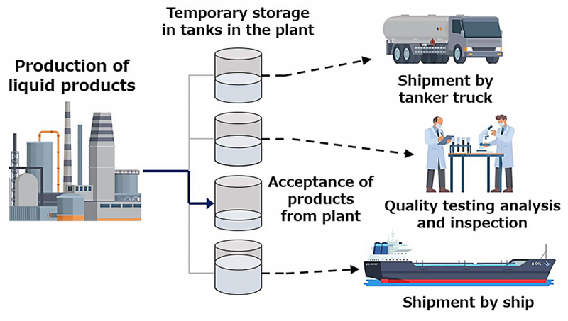 該工廠生產(chǎn)的液體產(chǎn)品最終需儲(chǔ)存在多個(gè)儲(chǔ)罐中。在儲(chǔ)存產(chǎn)品時(shí),必須根據(jù)訂單情況考慮并調(diào)整儲(chǔ)罐的選擇、質(zhì)量測(cè)試分析和檢驗(yàn)時(shí)間以及發(fā)貨時(shí)間。這項(xiàng)被稱為儲(chǔ)罐分配的工作需要考慮每個(gè)儲(chǔ)罐的灌裝率和檢驗(yàn)狀態(tài)等復(fù)雜因素,因此經(jīng)驗(yàn)豐富的人員不可或缺。