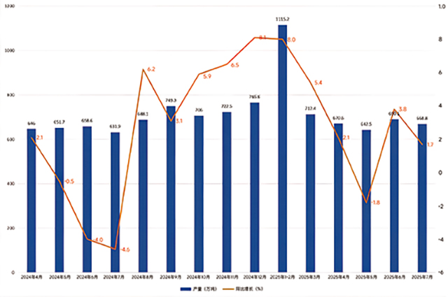 據(jù)國家統(tǒng)計局數(shù)據(jù),2025年7月,我國塑料制品行業(yè)匯總統(tǒng)計企業(yè)完成產(chǎn)量668.8萬噸,同比增長1.7%。1-7月累計完成產(chǎn)量4545.2萬噸,同比增長4.3%。
