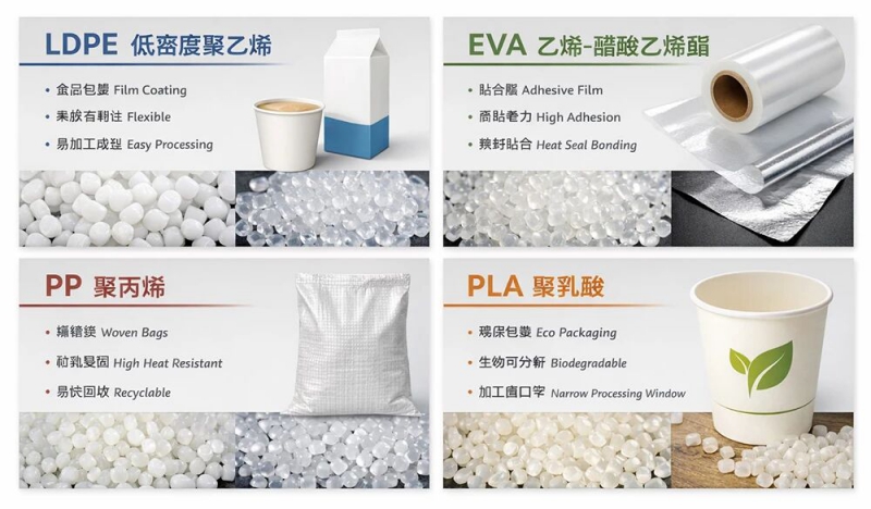 常見的有四種塑料——LDPE/EVA/PP/PLA