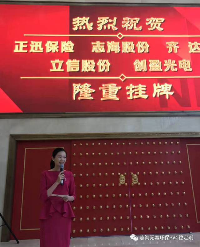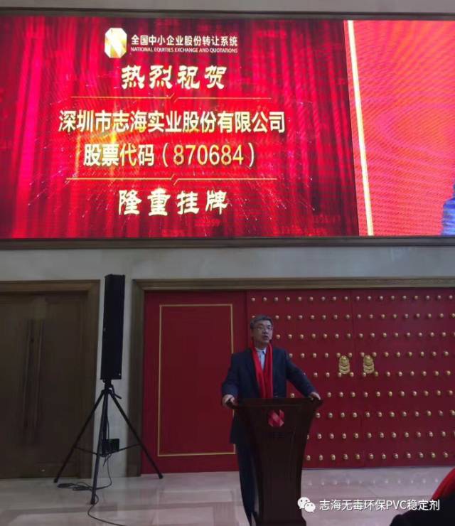 2017年6月6日,深圳市志海實業(yè)股份有限公司迎來了發(fā)展史上的一個重要的里程碑,董事長嚴一豐先生攜公司骨干團隊在北京成功參與了全國中小企業(yè)股份轉(zhuǎn)讓系統(tǒng)舉辦的掛牌儀式。志海股份的掛牌,意味著公司踏入了資本市場的車道,展示了志海環(huán)保PVC穩(wěn)定劑向著建設(shè)“全國第一、世界領(lǐng)先的環(huán)保穩(wěn)定劑”的宏大目標(biāo)邁出了堅實的一步。在此特別感謝我們的董事們監(jiān)事們領(lǐng)導(dǎo),國信券商、天職會計事務(wù)所、中銀律師事務(wù)所三方機構(gòu)的幫助,各供應(yīng)商和貴賓客戶們的熱心協(xié)助,各界領(lǐng)導(dǎo)和同事、朋友們的關(guān)心下,志海股份終于邁出了資本市場的發(fā)展的第一步。我們將不忘初心,孜孜不倦奉獻志海的力量,為祖國的藍天白云奮斗,在環(huán)保事業(yè)上越走越遠,越來越強!