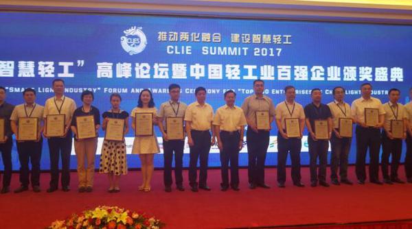 榮獲2016年度“中國輕工業百強企業”
