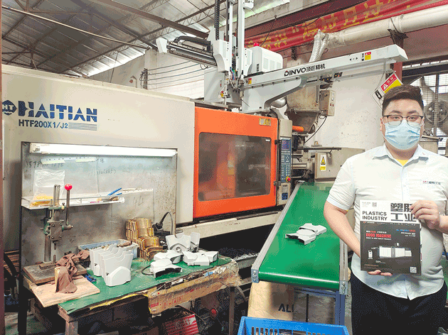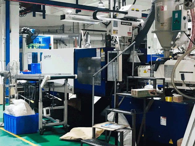 專注于塑料制品、五金制品、模具、燈飾配件、童車配件的煜煌鑫公司車間使用的是8臺(tái)佳明注塑機(jī)和6臺(tái)拓斯達(dá)機(jī)械手。