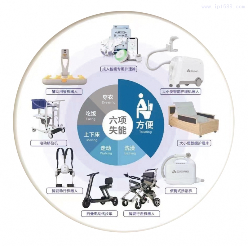 公司圍繞失能老人的大小便、洗澡、吃飯、上下床、走動、穿衣等六項護理需求,提供智能護理設備與智慧護理平臺的綜合解決方案,打造助便系列的大小便護理機器人、助浴系列的便攜式洗浴機、助行系列的智能行走機器人等多款熱銷產品。